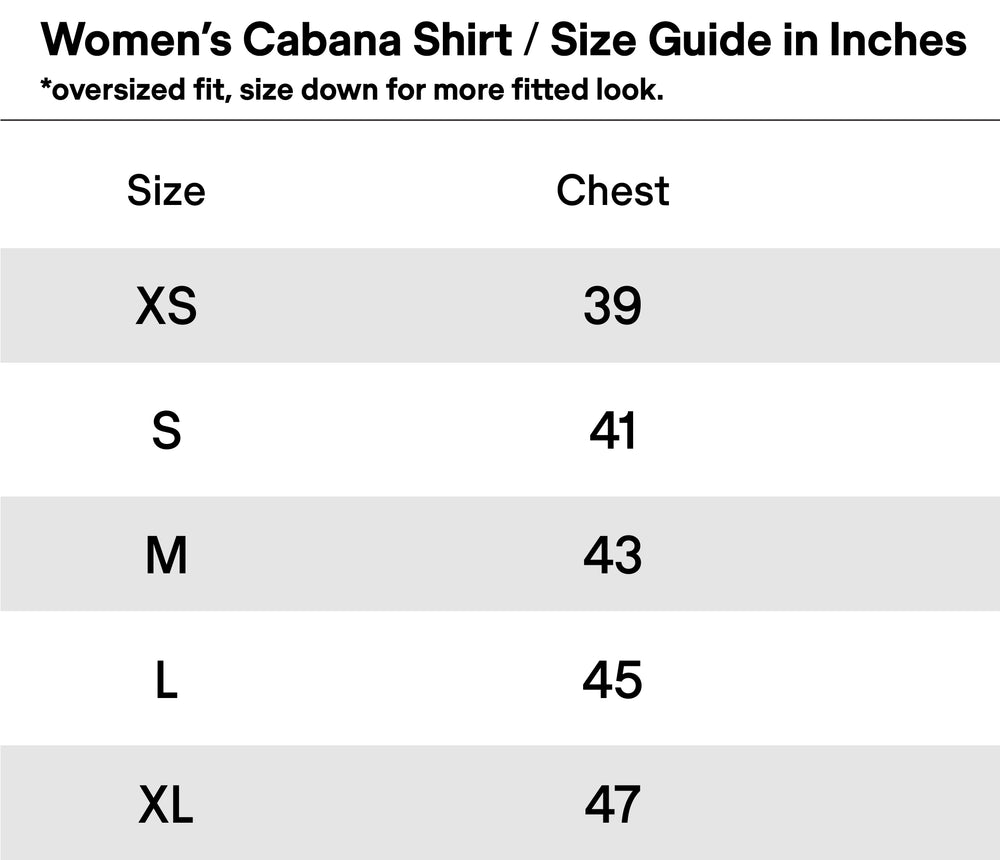 I absolutely LOVE the women's cabana shirt and shorts! They are so cozy and dry me so quickly! I usually wear a small, but the shirt runs a little big, so I ordered an XS and it fits perfectly! The shorts are regular sizing. I've gotten so many compliments on this when I'm at the beach or at the pool. There's nothing else like it!!!! LOVE LOVE LOVE - will definitely be on the Christmas lists for our family members!
